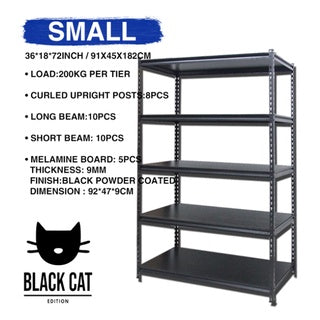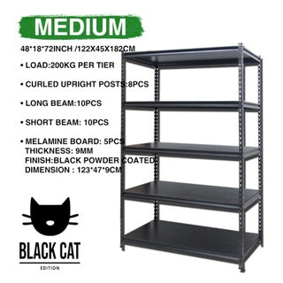 (MEDIUM) DIY STORAGE RACK BLACK CAT SHELVES- STEELRACK BLACK LAMINATED